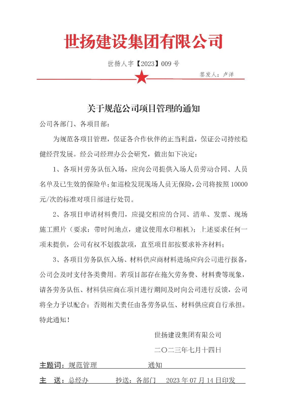 關(guān)于規(guī)范公司項(xiàng)目管理的通知