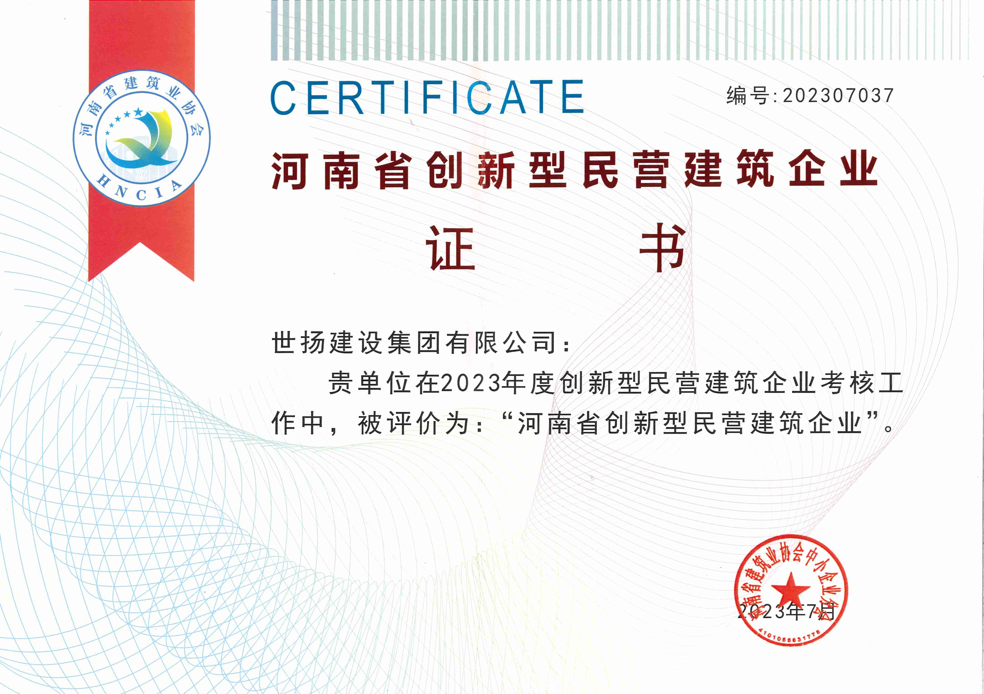 創(chuàng)新型民營(yíng)建筑企業(yè)證書