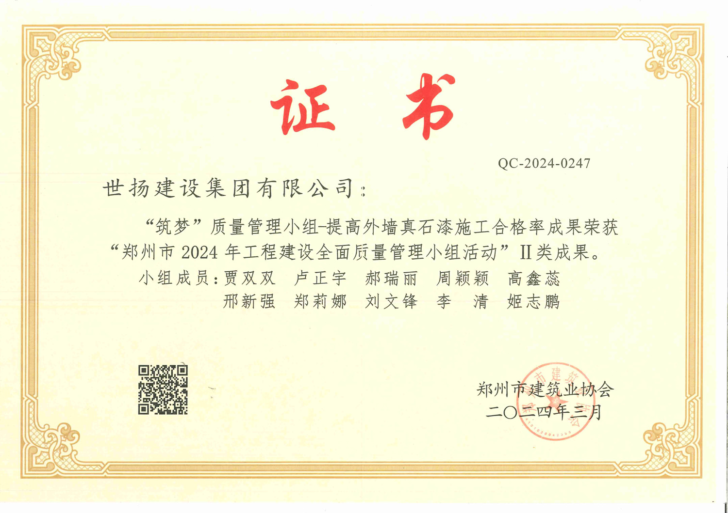 2024鄭州市建筑業(yè)協(xié)會(huì)QC小組證書